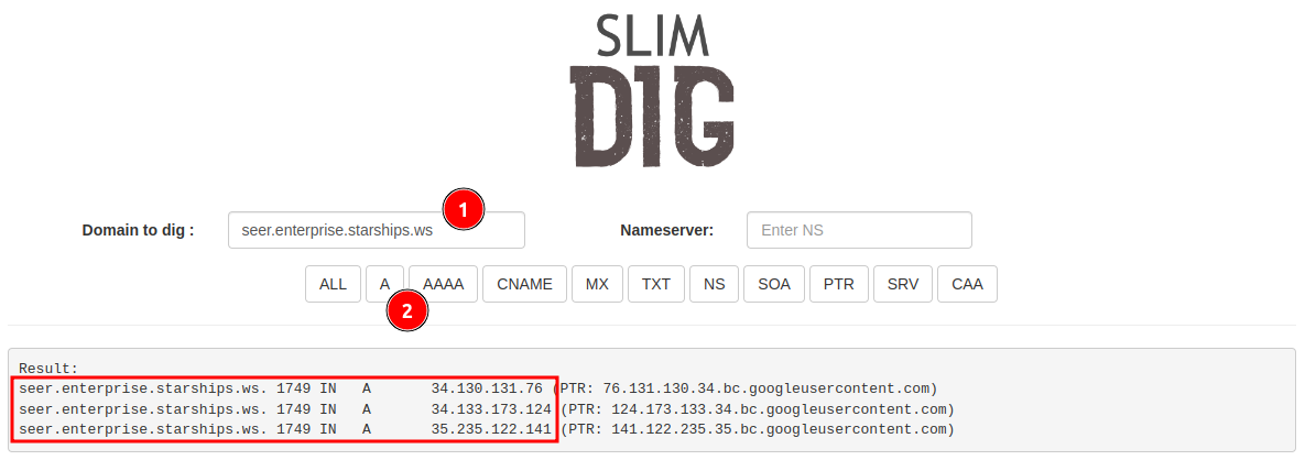 For those wielding Linux, dig a seer.enterprise.starships.ws +noall +answer yields an ensemble of IPs, signifying our united front.