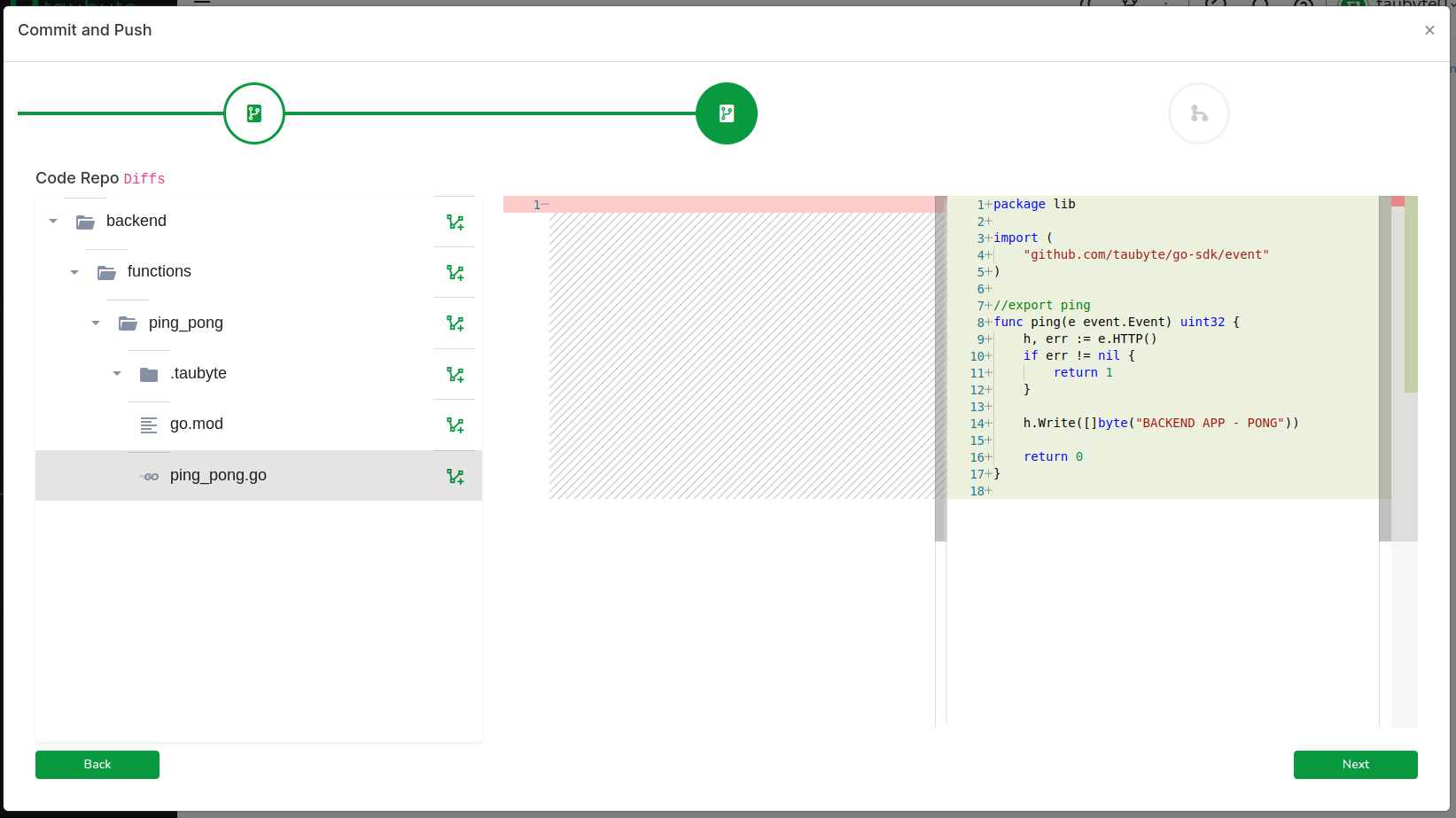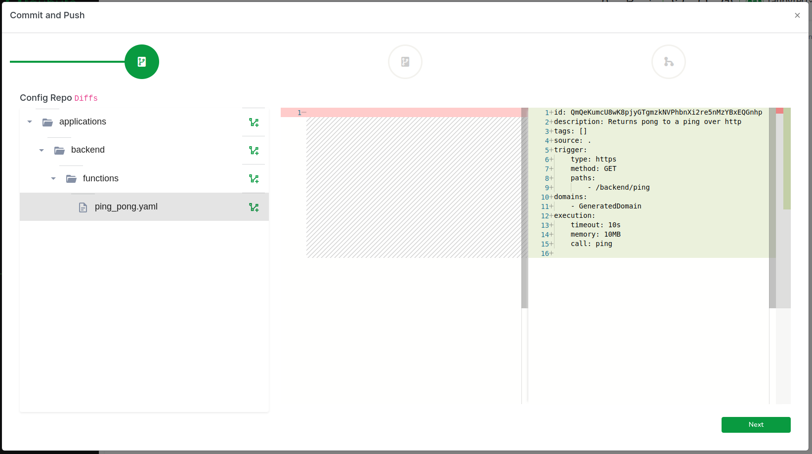 Click on the green button on the bottom right corner to push your changes. Notice the function configuration is located inside the application's folder.