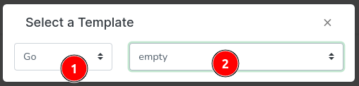 back to Web Console. Navigate to the Functions tab on the left sidebar. Then click on + to create a new function. Click on Template Select. Select Go and empty. Close the template modal.
