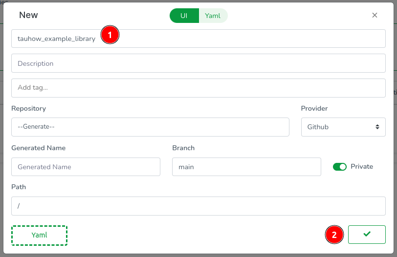 Note: use your own repository id and fullname. If you didn't save them you can Navigate to the library, click on it then switch to YAML to find them. Another way if to just open the config repository and find them in