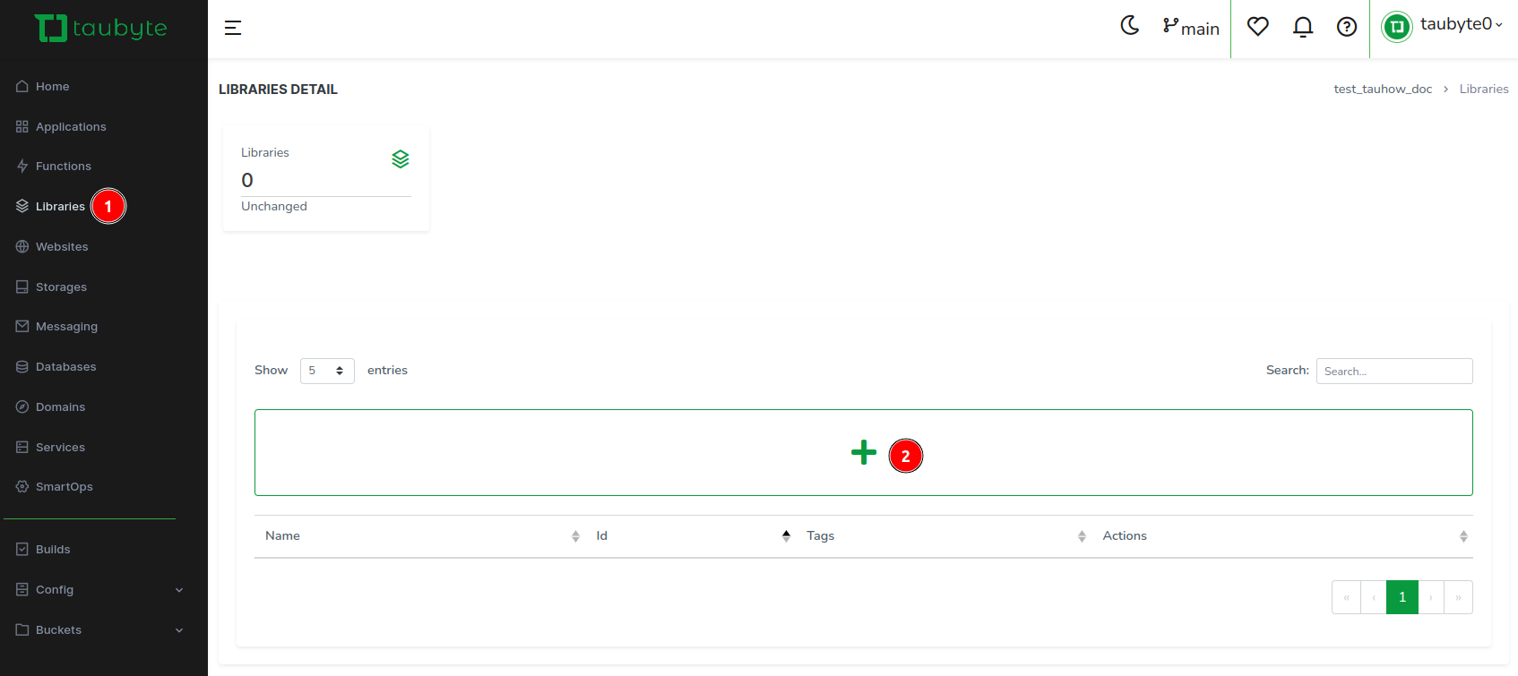 Navigate to the Libraries tab on the left sidebar. Then click on + to create a new library.